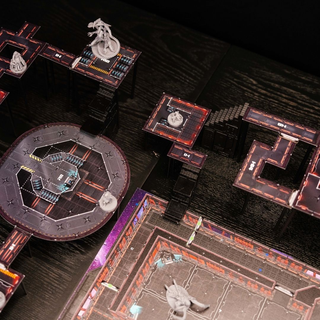 Dark Forces - Sci-fi set two is designed to expand the system and allow you to build a huge variety of up to three level space structures with a dark and sinister feel. Combine with other Harbinger sets seamlessly!